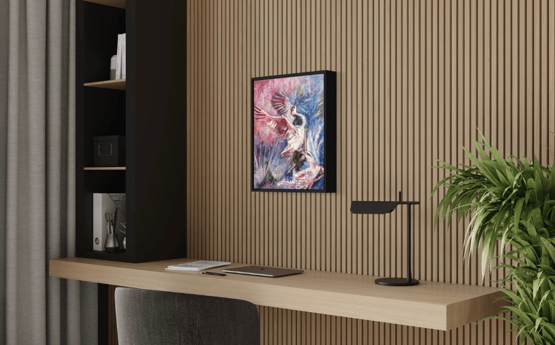 "Be the Fireworks" captures the electrifying energy of self-expression and freedom. A dancer and a graceful crane move in unison, their fluid motions igniting the canvas like bursts of light and color. The painting embodies the bold, vibrant spirit of embracing your own power and shining unapologetically. It’s a celebration of living fully, daring to stand out, and being the spark that lights up the world around you.