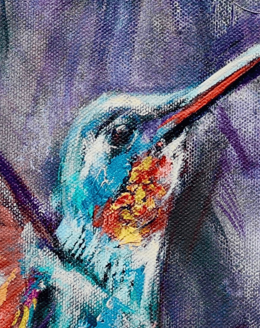 In this painting, two young sisters dance in their own world, laughter lifting into the sky. In front of them, hummingbirds soar—tiny, powerful creatures that symbolise freedom, energy, and the courage to explore uncharted skies. They represent the spirit of becoming—of knowing that the horizon is never a limit, but a beginning.
