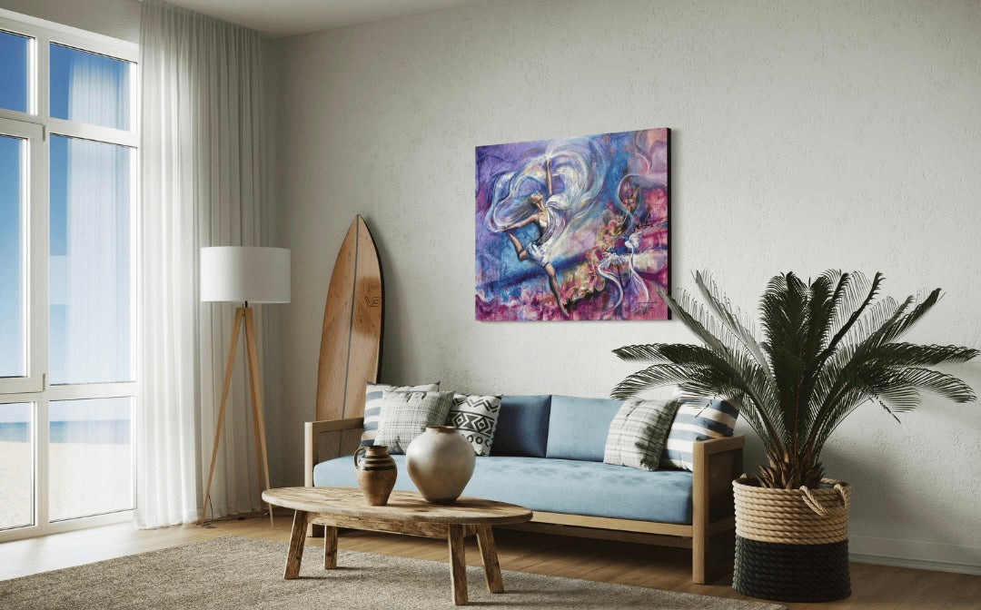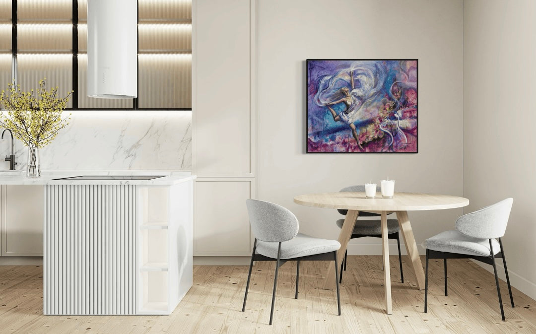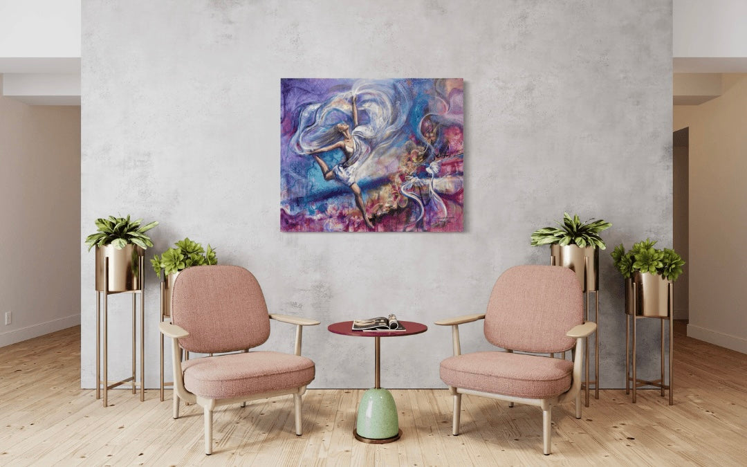 "Dance of Freedom" captures the exhilarating, unrestrained spirit of liberation. With every brushstroke, the painting celebrates the joyous movement of letting go—breaking free from limitations and embracing the beauty of living authentically. The vibrant colors and fluid lines evoke a sense of motion and energy, inviting viewers to feel the rhythm of freedom and the power of self-expression. It’s a visual reminder that true freedom comes when we dance to our own beat, fearless and unbound.