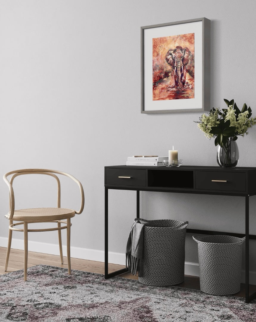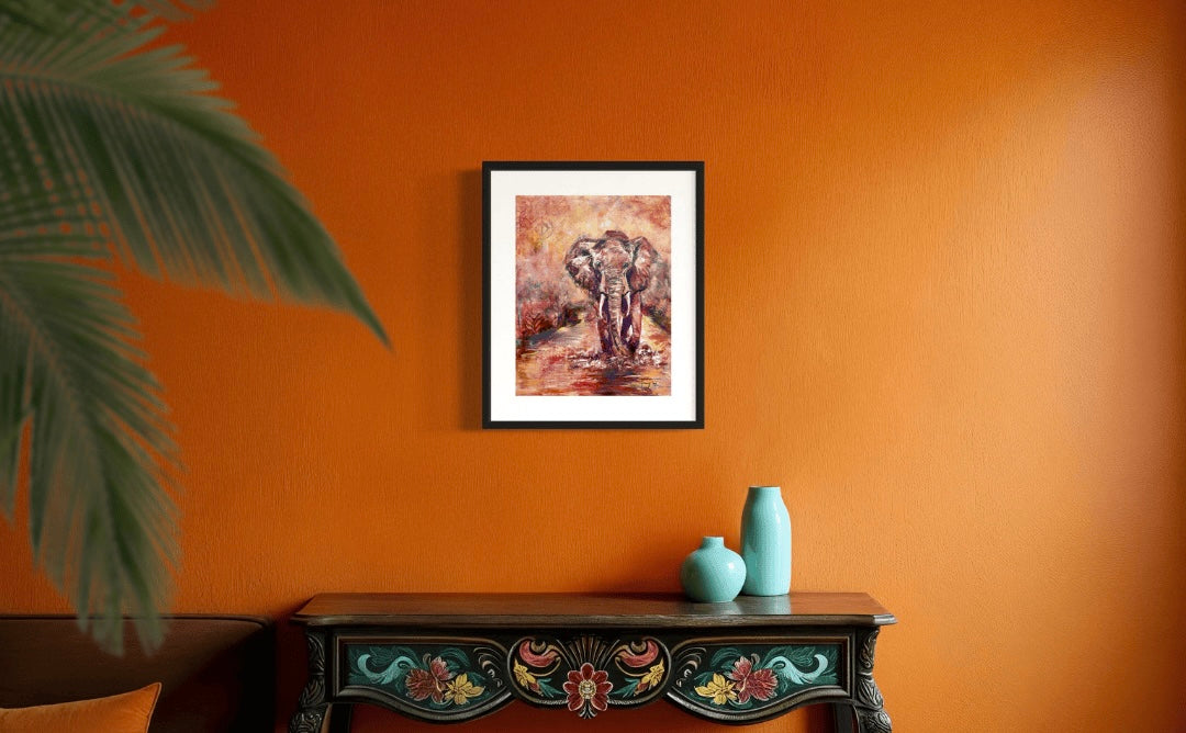 "Rising from the Dust" portrays the mighty elephant as it strides forward, powerful and resolute, emerging from a swirl of dust. This painting symbolizes strength, resilience, and the triumph of spirit, capturing the elephant’s steady march toward a new beginning. It inspires us to rise above challenges, walking with confidence and grace, no matter what we leave behind.