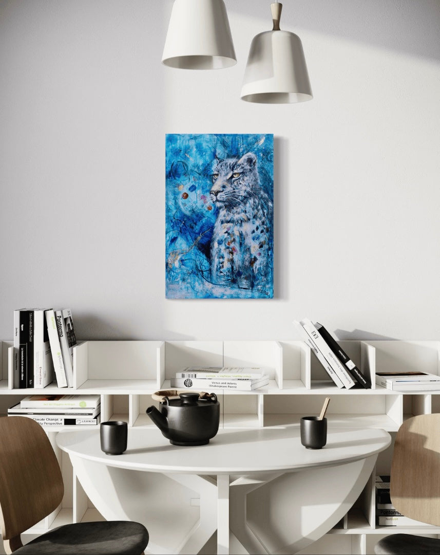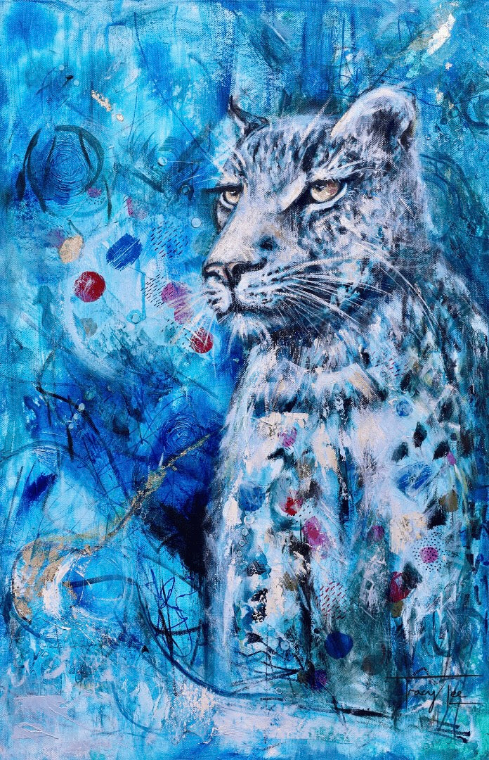 "Spots of the Hidden Realm" portrays the snow leopard as a bold explorer of untamed, vibrant worlds. Its elusive spots blend with a burst of color, symbolizing the courage to navigate uncharted realms. This painting inspires a journey into the unknown, where beauty and mystery thrive in the wild, urging us to seek out the unseen and embrace the adventure within.