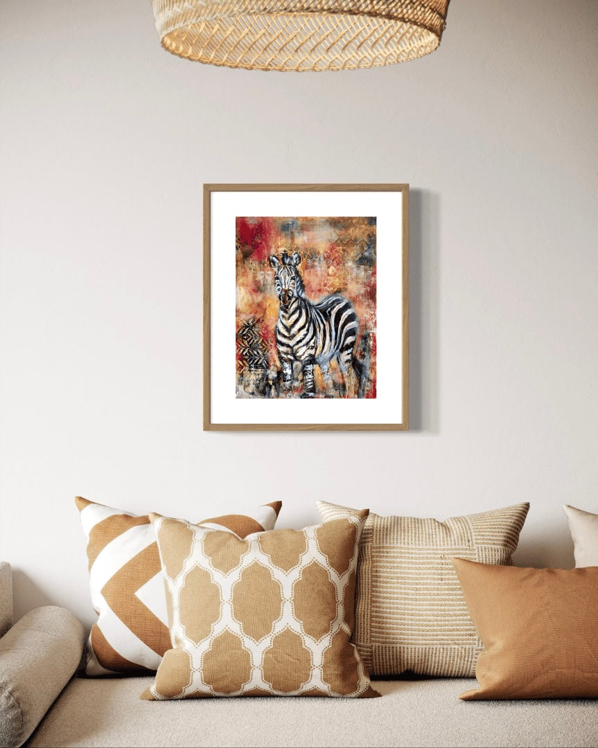 "Stripes of Wilderness" features a zebra boldly navigating an abstract world, its striking stripes symbolizing the spirit of adventure. Set against a dynamic, untamed backdrop, this painting embodies the explorer’s journey through the wild unknown, where each twist and turn leads to discovery. It inspires us to embrace our unique path, finding strength in individuality while venturing fearlessly into the wilderness of life.
